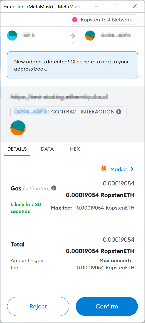 Last step is to *Sign* the transaction on the blockchain by using the MetaMask addon.